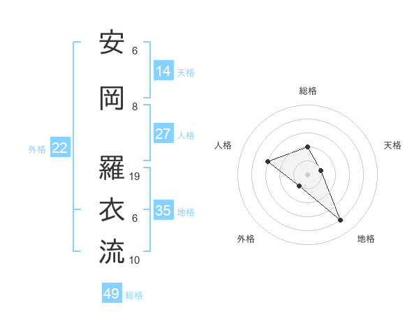 安岡 羅衣流さんを姓名の画数から五運を鑑定