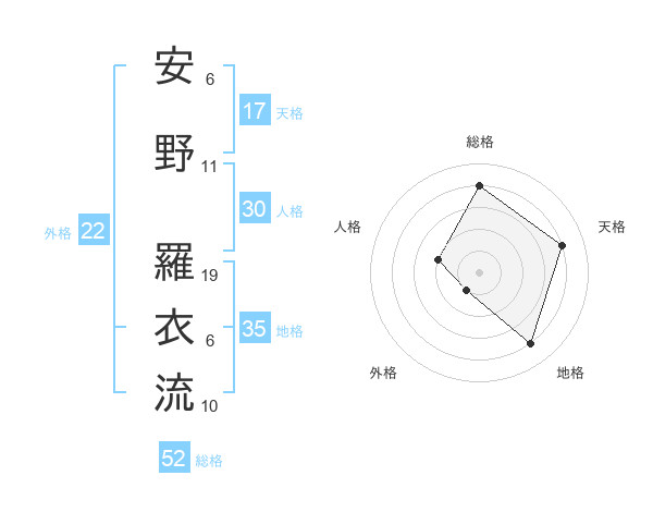 安野 羅衣流さんを姓名の画数から五運を鑑定