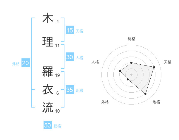木理 羅衣流さんを姓名の画数から五運を鑑定