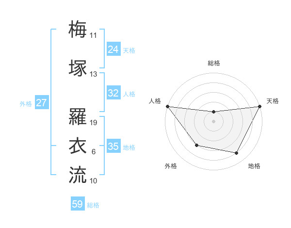 梅塚 羅衣流さんの総格は59画の1点!
