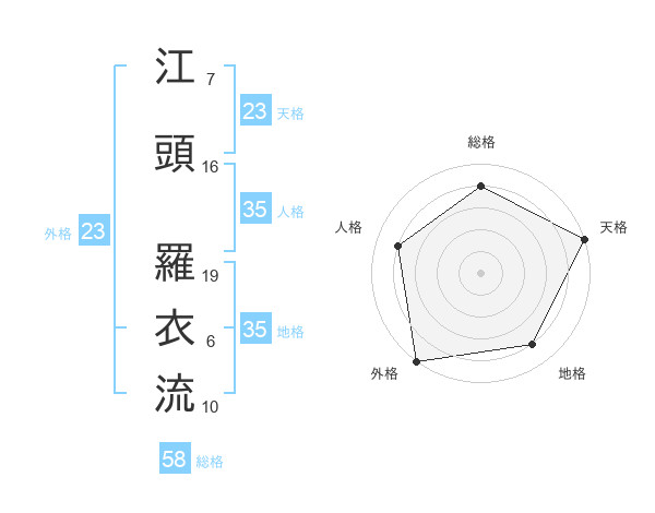 江頭 羅衣流さんを姓名の画数から五運を鑑定
