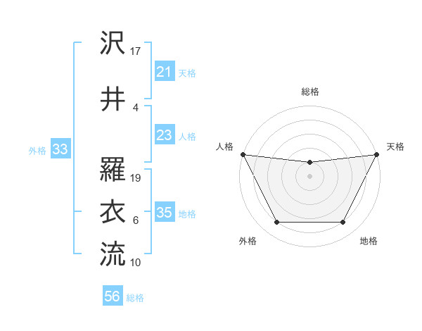 沢井 羅衣流さんの外格は33画の4点