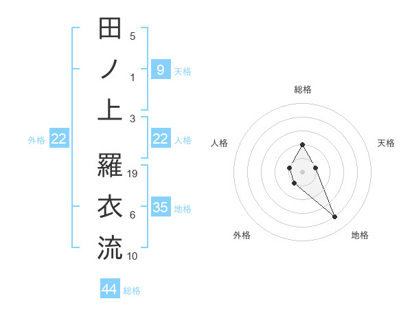 田ノ上 羅衣流さんの総格は44画の2点!