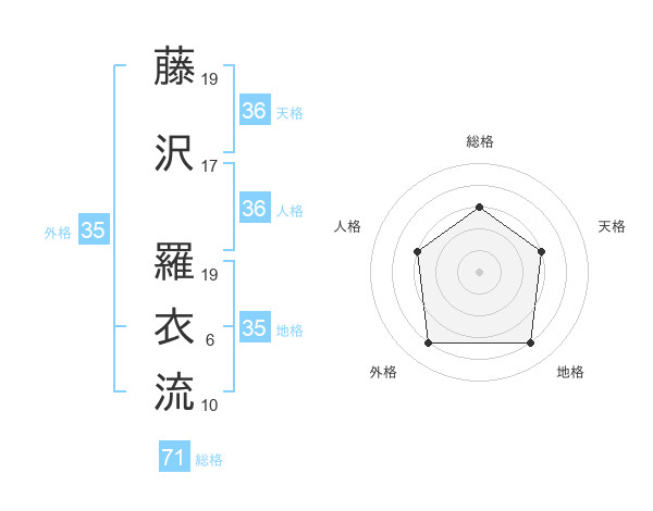 藤沢 羅衣流さんを姓名の画数から五運を鑑定