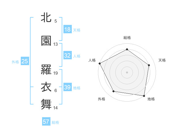 北園 羅衣舞さんを姓名の画数から五運を鑑定