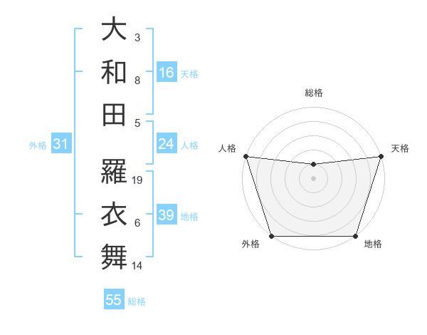大和田 羅衣舞さんの外格は31画の5点