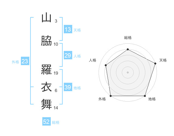 山脇 羅衣舞さんを姓名の画数から五運を鑑定
