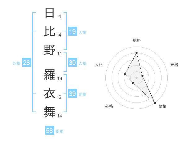 日比野 羅衣舞さんを姓名の画数から五運を鑑定