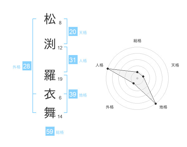 松渕 羅衣舞さんを姓名の画数から五運を鑑定