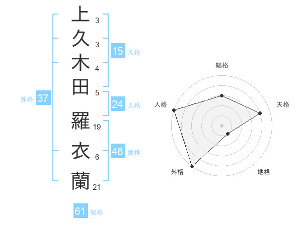 上久木田 羅衣蘭さんの外格は37画の5点!