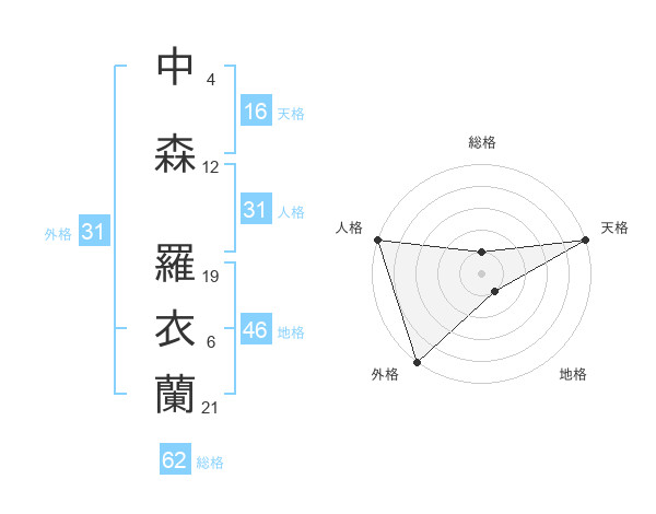 中森 羅衣蘭さんの総格は62画の1点!