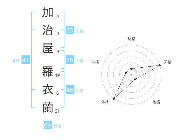 加治屋 羅衣蘭さんの天格は23画の5点