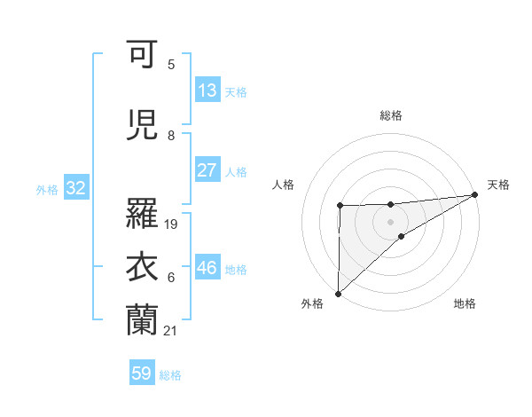 可児 羅衣蘭さんを姓名の画数から五運を鑑定