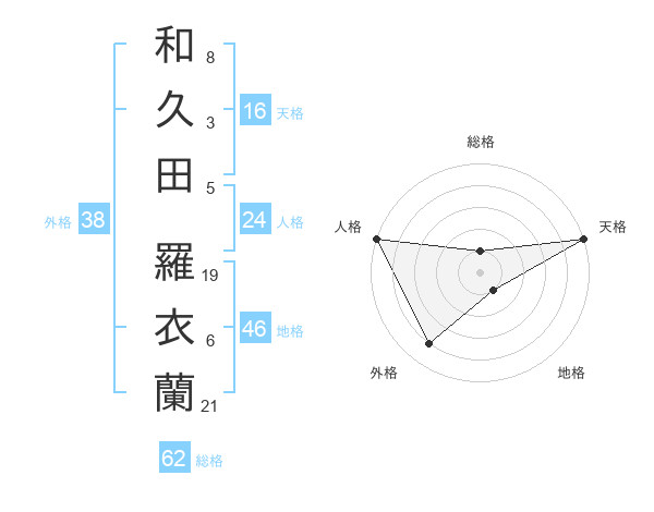 和久田 羅衣蘭さんの天格は16画の5点!