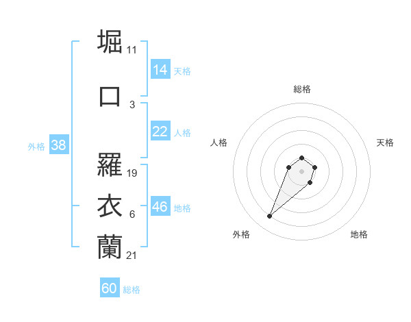 堀口 羅衣蘭さんを姓名の画数から五運を鑑定