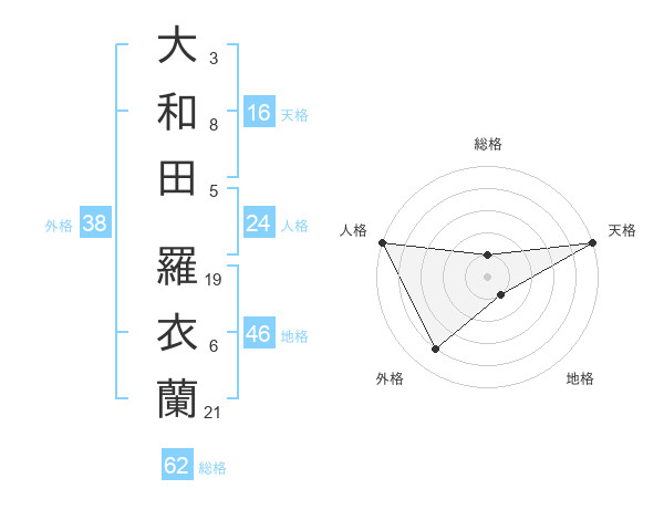 大和田 羅衣蘭さんを姓名の画数から五運を鑑定