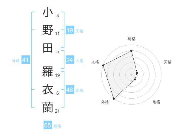 小野田 羅衣蘭さんを姓名の画数から五運を鑑定