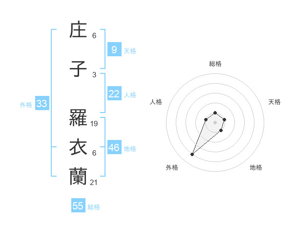 庄子 羅衣蘭さんの外格は33画の4点!