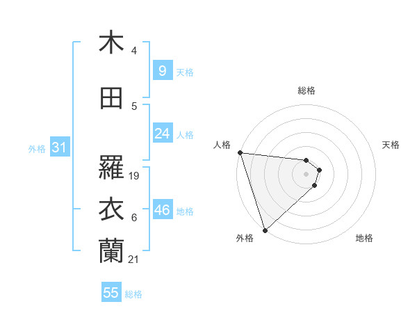 木田 羅衣蘭さんを姓名の画数から五運を鑑定