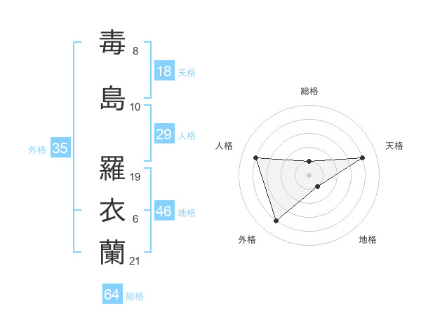毒島 羅衣蘭さんの総格は64画の1点!