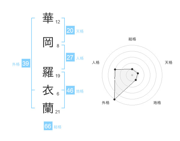 華岡 羅衣蘭さんの外格は39画の5点!