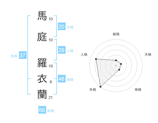馬庭 羅衣蘭さんの外格は37画の5点!