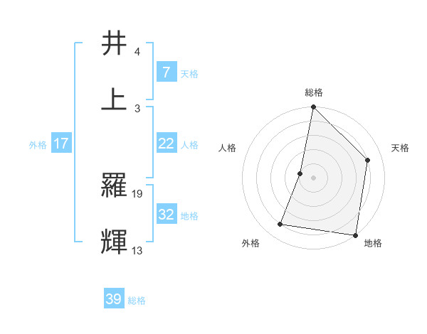 井上 羅輝さんを姓名の画数から五運を鑑定