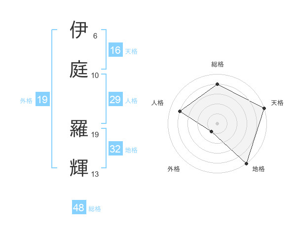 伊庭 羅輝さんを姓名の画数から五運を鑑定