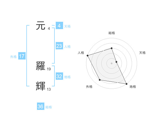 元 羅輝さんの総格は36画の3点!