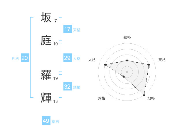 坂庭 羅輝さんを姓名の画数から五運を鑑定