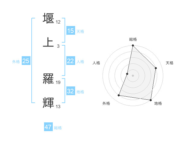 堰上 羅輝さんを姓名の画数から五運を鑑定