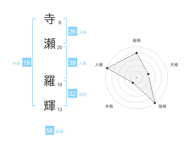 寺瀬 羅輝さんの総格は58画の4点!
