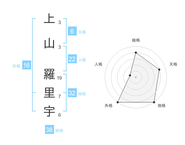 上山 羅里宇さんを姓名の画数から五運を鑑定