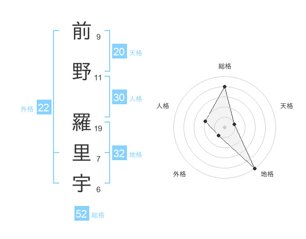 前野 羅里宇さんを姓名の画数から五運を鑑定