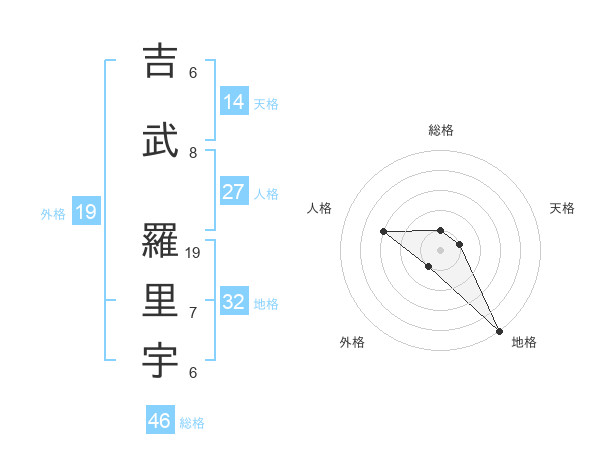 吉武 羅里宇さんの総格は46画の1点!
