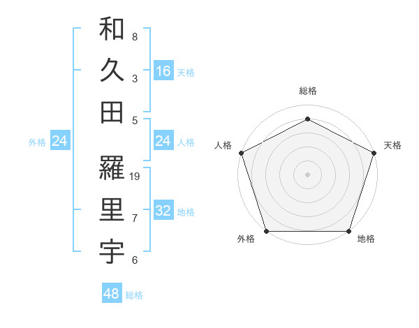 和久田 羅里宇さんを姓名の画数から五運を鑑定