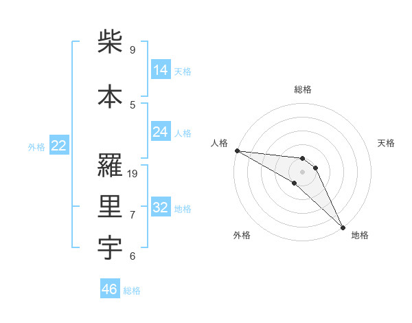 柴本 羅里宇さんの総格は46画の1点!