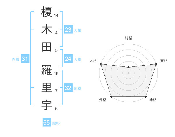 榎木田 羅里宇さんの総格は55画の1点!