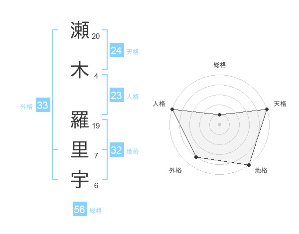 瀬木 羅里宇さんを姓名の画数から五運を鑑定