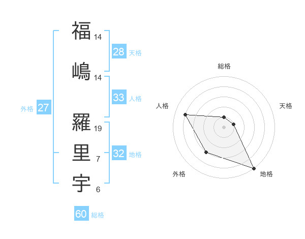 福嶋 羅里宇さんの総格は60画の1点!