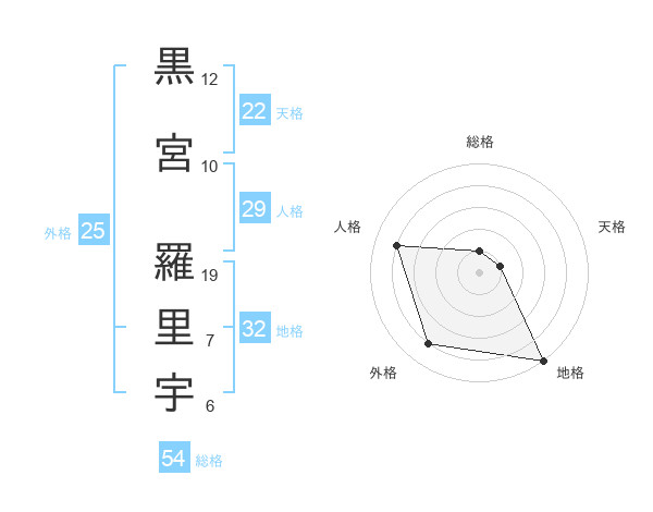 黒宮 羅里宇さんを姓名の画数から五運を鑑定