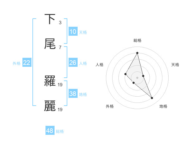 下尾 羅麗さんの総格は48画の4点!