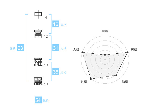中富 羅麗さんを姓名の画数から五運を鑑定