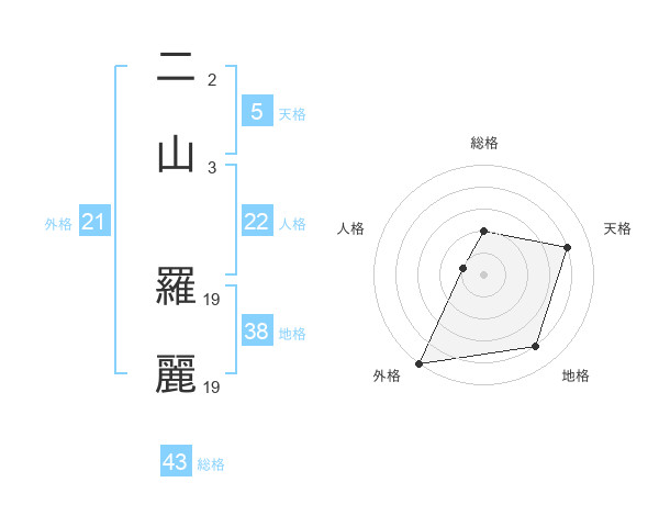 二山 羅麗さんの外格は21画の5点!