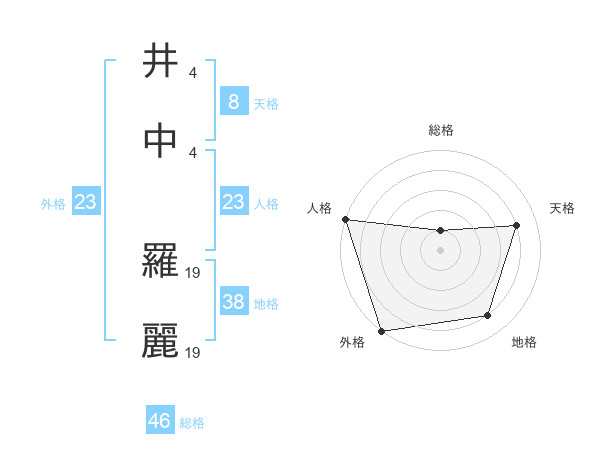 井中 羅麗さんを姓名の画数から五運を鑑定