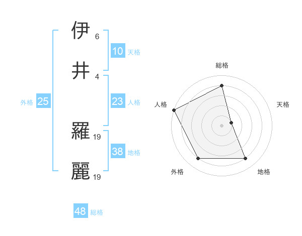 伊井 羅麗さんの総格は48画の4点!