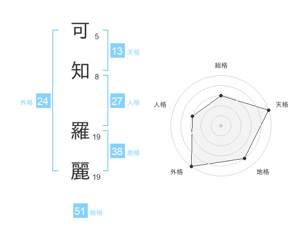 可知 羅麗さんの総格は51画の3点!