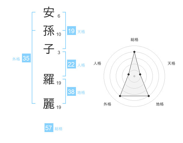 安孫子 羅麗さんの総格は57画の4点!
