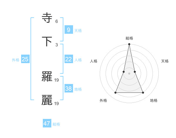 寺下 羅麗さんの総格は47画の5点!