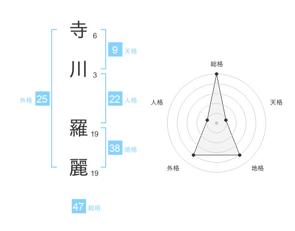 寺川 羅麗さんの総格は47画の5点!
